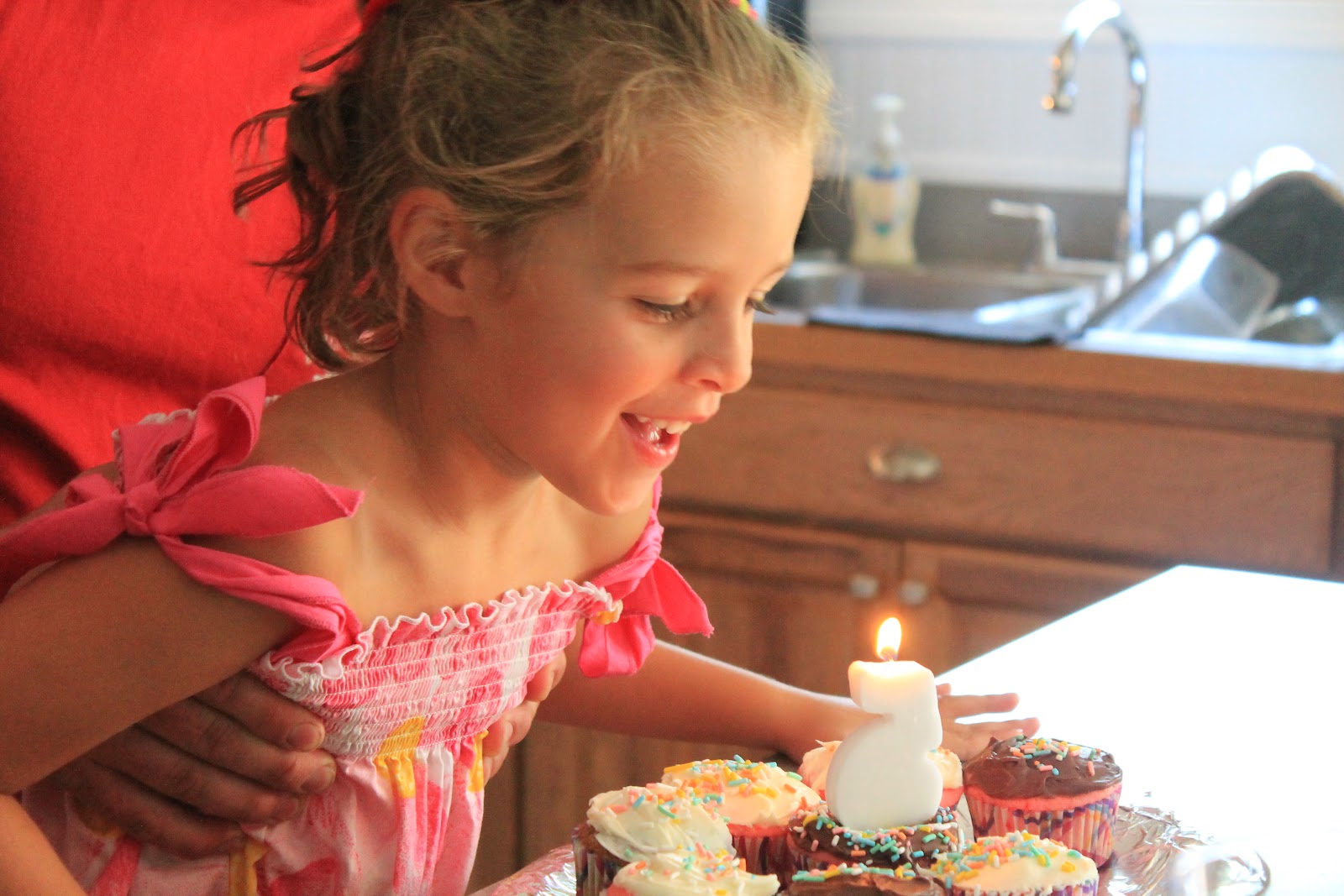 Here's the birthday girl blowing out her cupcake...she made sure she had the one with the most sprinkles.